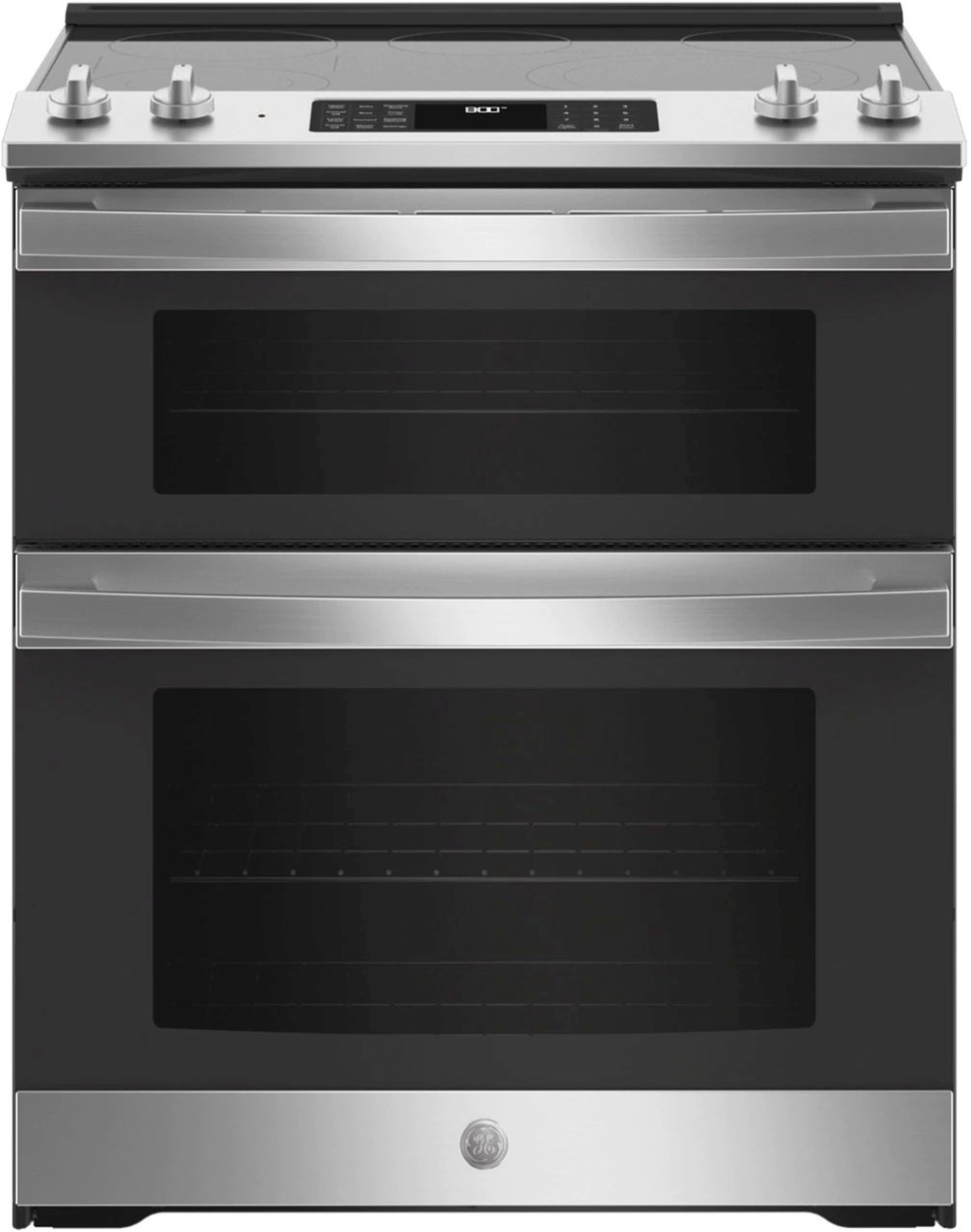 This oven features a hidden baking element that gets rid of hard-to-reach areas and makes cleanup easier. Cook an entire meal at once with a 6.7 cubic foot total capacity double oven which provides enough room for multiple dishes.Read More