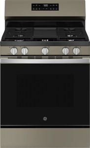 GE® 500 Series 30" Slate Freestanding Gas Range features Crisp Mode, Extra-Large Integrated Non-Stick Griddle, 15,000 BTU Power Boil™ Burner, Edge-to-Edge Cooktop, Precise Simmer Burner, Center Oval Burner, Self-Clean with Steam Clean, and Oven Storage Drawer.Read More