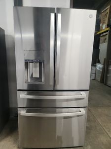 This GE Profile™ 4-french-door refrigerator with door in door features an adjustable temperature drawer with bin caddy, built-in Wi-Fi, LED light wall, soft-close drawers and hands-free autofill dispenser.Read More