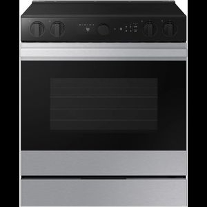 Samsung BESPOKE 30 Inch Slide-In Electric Smart Range with 5 Elements, 6.3 cu. ft. Convection+ Oven, Express Boil™, Warming Zone, Storage Drawer, Air Fry, Self & Steam Clean, and ADA Compliant: Stainless SteelRead More